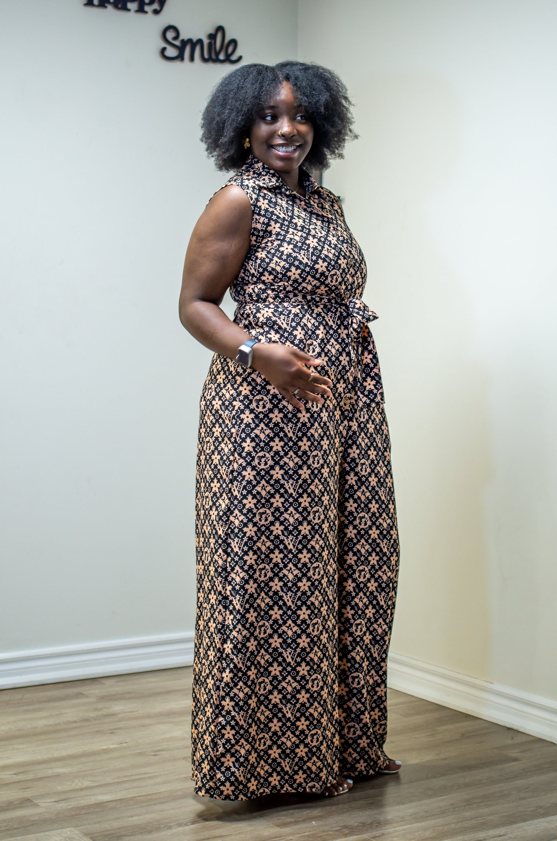 Bold and effortless, the Aeris Jumpsuit features a sleeveless design with a collared, button-front top and a belted waist for a defined silhouette. Crafted from crêpe fabric with a subtle stretch, it flows into wide-leg pants with side pockets — balancing sharp tailoring with everyday ease. Perfect for vacations, brunches, or chic evenings out.