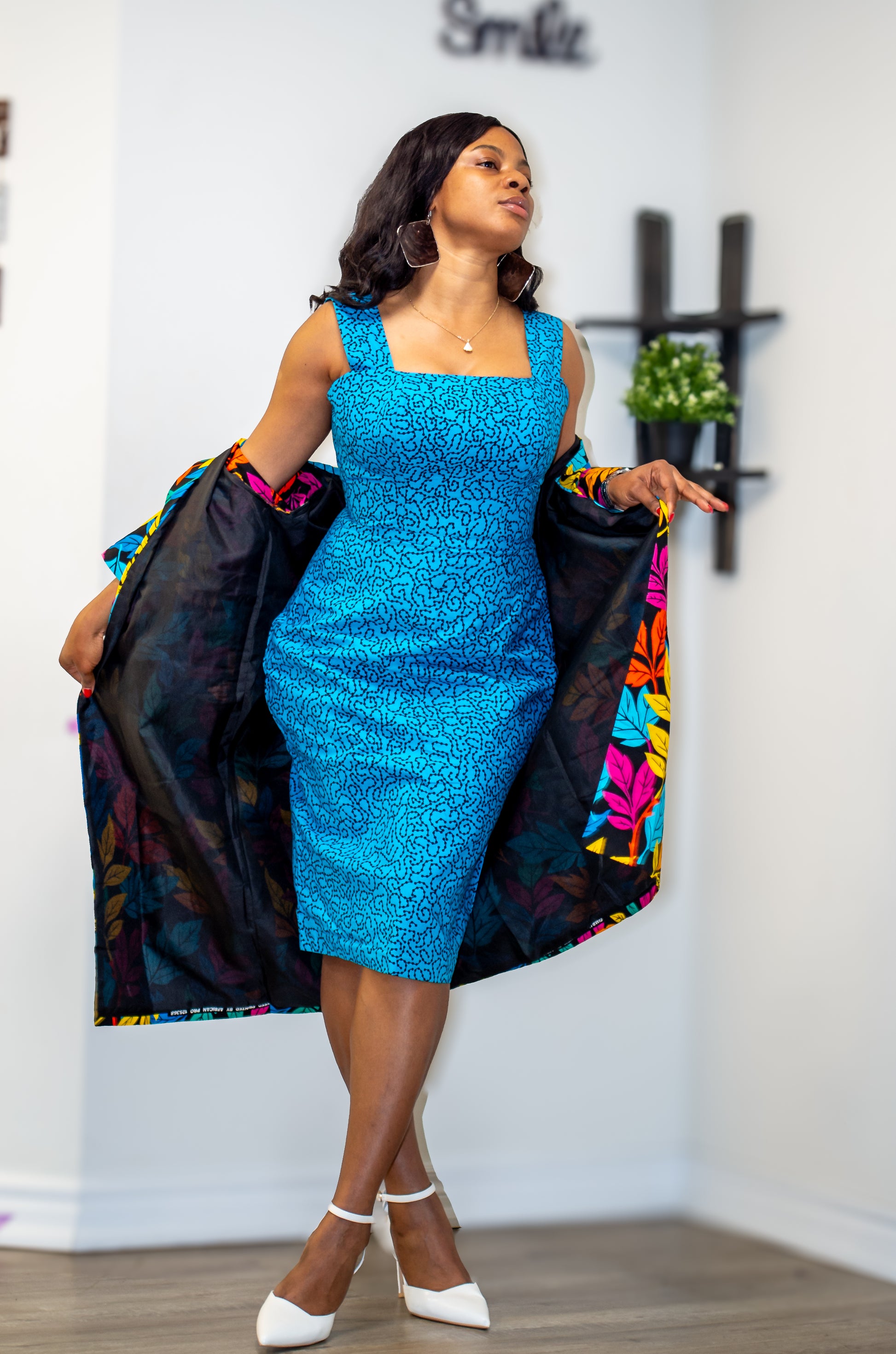 Deux Nuances – Seren brings stillness and statement in one breath. This Ankara gown and kimono jacket glides with ease, while the open beaded back adds just the right touch of drama. It’s effortless, elevated, and quietly unforgettable — a soft kind of power dressing.