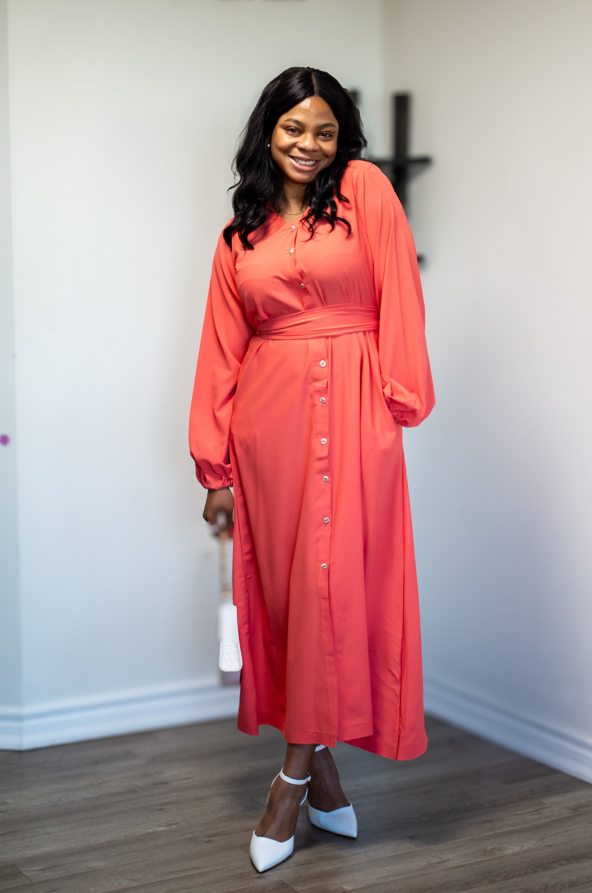 - Shirt dress with cuffed sleeves, waist sash & pockets